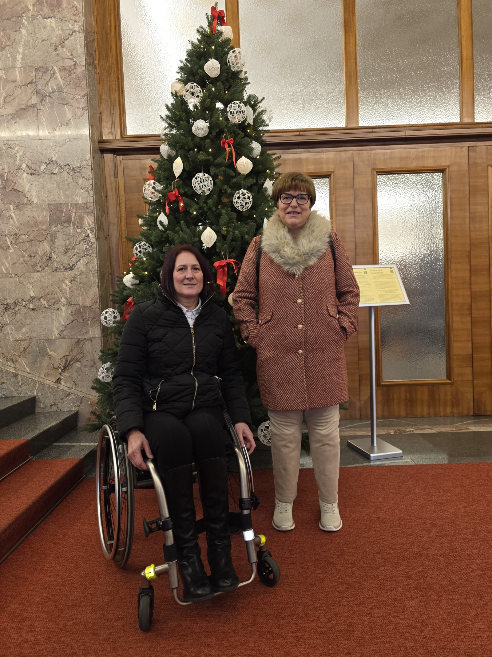 Predsednica Državnega zbora mag. Urška Klakočar Zupančič je danes, 22. decembra 2025, sprejela predsednico Društva gibalno oviranih in žrtev nasilja VIZIJA Barbaro Slaček in članico nadzornega odbora društva Andrejo Bezenšek.
