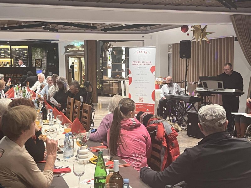 Ob mednarodnem dnevu boja proti nasilju nad ženskami, mednarodnem dnevu invalidov in mednarodnem dnevu prostovoljstva smo se člani Društva Vizija družili v Gostišču Ulipi. Po pozdravnem nagovoru predsednice Barbara Slaček je sledil podpis prostovoljskih dogovorov za leto 2026. Večer so popestrili plesalci KUD Galiarda iz Celja, ki so predstavili renesančne plese iz 15. in 17. stol. Lepo, barvito in doživeto je bilo. Za sladke prigrizke, darila in prevoze so poskrbeli naši zvesti prostovoljci. Za zabavo, ki je trajala pozno v večer, pa Duo ŽUR. Na plesišče so se podali tudi naši člani. Iskrena hvala vsem, ki ste ta večer preživeli z nami.
